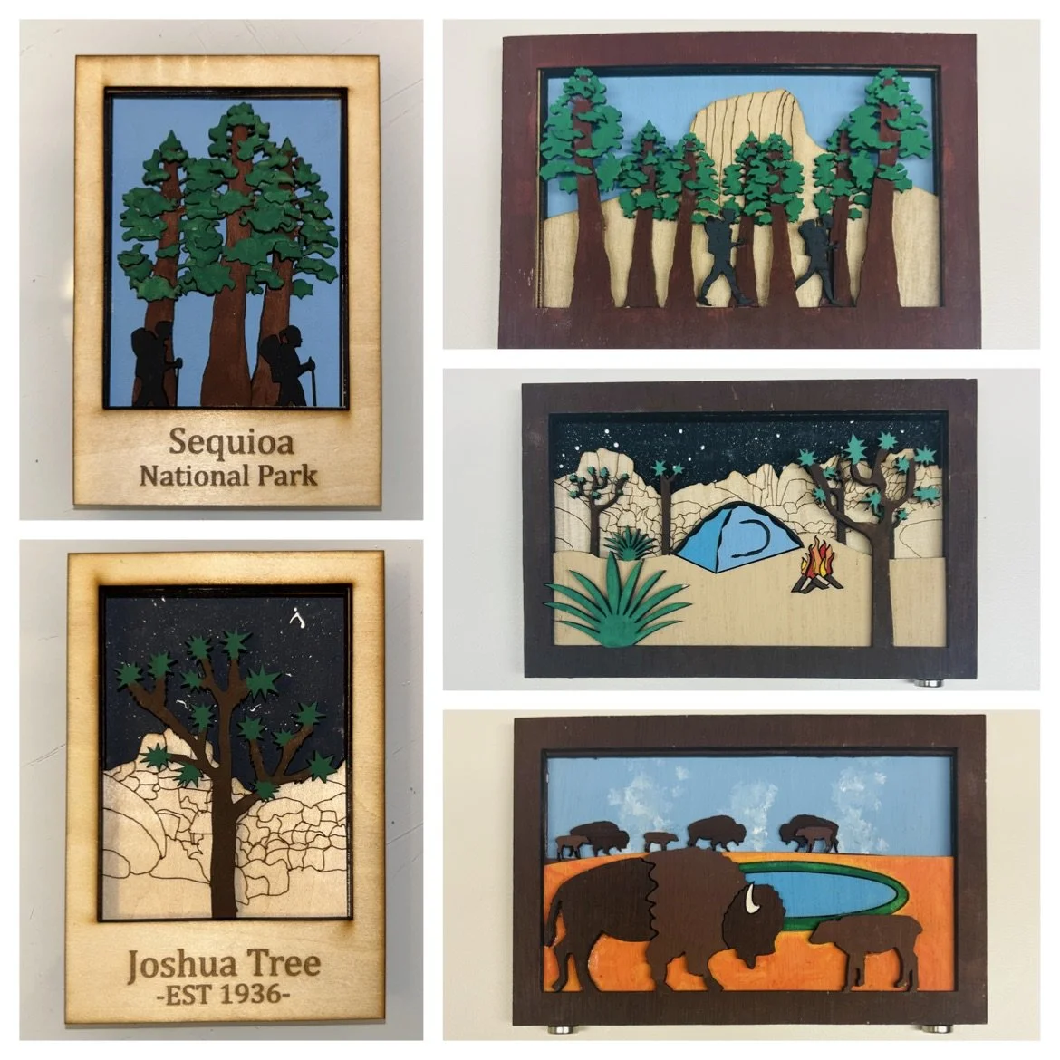 We have a variety of layered wooden magnets! Custom Magnets are available upon request.